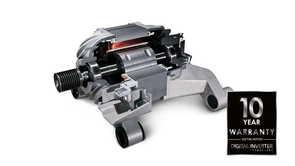 Door gebruik te maken van krachtige magneten, die Samsung toepast in hun Digital Inverter technologie. Wordt er een zeer energie zuinig omgegaan met energie verbruikt ten opzicht van gebruikelijke motoren. Ook geeft Samsung 10 jaar garantie op deze Digital Inverter technologie.