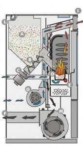 De werking van een pelletkachel bestaat uit het verbranden pelletkorrels.